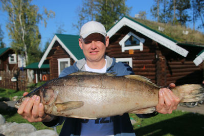 P.S. Что касается Жени, то он все-таки ближе к концу нашего пребывания в гостеприимной Вытегории все же поймал свою рыбу-монстра, и сфотографировался с ней во всех ракурсах до того, когда она была брошена в суп…