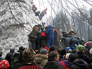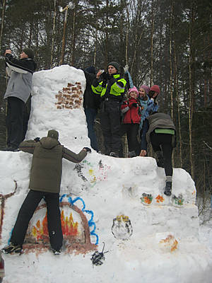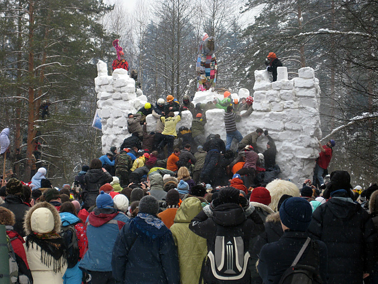 Ну и самое главное — штурм снежной крепости. На поляне была построена крепость нешуточных размеров (башня была наверное метров 6–7).