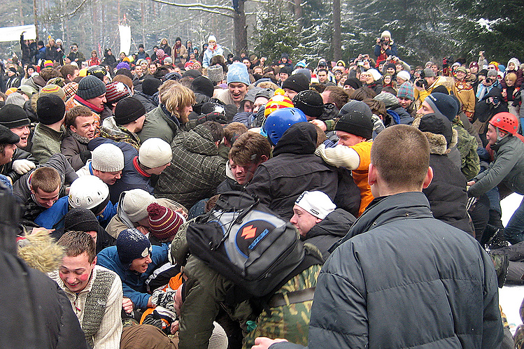 Потом мы услышали завывания хором, похожие на боевой клич и стали свидетелями битвы стенка-на-стенку. Вот мужики готовятся:
