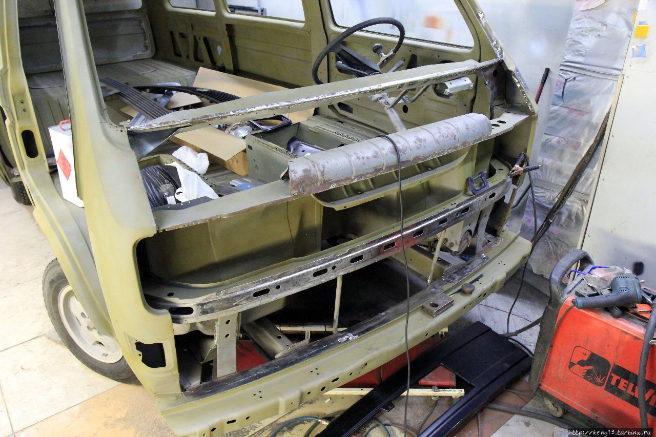 Объём проведённых жестяных и сварочных работ сложно описать, некоторые детали подвергались таким восстановительным работам, что без покраски напоминали Франкенштэйна.