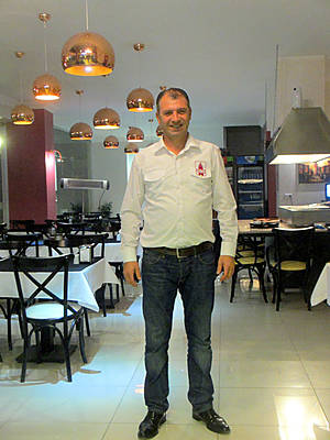Дошли до ресторана, который совсем недавно открылся в новом доме рядом с нашей улицей. Там очень приятный дядечка работает. Говорит на русском языке, что довольно редко для нашего города. Мы похвалили ресторан. Он пригласил нас зайти и посмотреть поближе. А мы сфотографировали его на фоне зала. В ресторане было пусто. Но он рассчитывал, что на новый год гости будут. Мы пожелали ему "Mutlu Yıllar"!