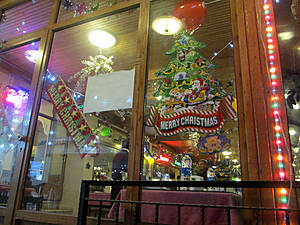 Мы увидели, что рестораны ждут гостей. Те, которые не закрылись на зиму, были украшены новогодними гирляндами. Горели огоньки на ёлочках, мигали разноцветные лампочки.