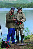 Однажды, вернувшись из очередной радиальной вылазки, за столиком в нашем лагере на Сейдозере я обнаружил вот такого любопытного человека. Зовут его Борис Петрович, лет ему 62 или 68 (точно не запомнил), он путешественник-одиночка и музыкант, хотя сейчас уже на пенсии. Живёт где-то на Урале. На момент, когда мы его встретили, он спустился с вершин Ловозерских тундр, где провёл 14 дней один с большим рюкзаком. Удивили его светящиеся добрые глаза и то, что он не берёт с собой в горы газовую горелку, считая её излишеством и лишним весом, хотя резиновые боты для прохождения бродов у него с собой были, хотя весят они никак не меньше горелки)