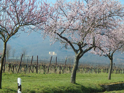Напоследок я вас опыть приглашаю в южный Пфальц, когда в этом удивительно теплом и плодородном регионе цветет миндаль. 80-километровый Миндальный путь практически совпадает с Немецкой Винной дорогой. Вдоль этого маршрута растут и плодоносят средиземноморские растения — миндаль, фиги или сьедобные каштаны, уже не говоря об абрикосах и персиках. В начале марта на этом маршруте регулярно устраиваются Праздники цветения миндаля, неотделимой частью которых является дегустация местного вина и блюд пфальцской кухни.