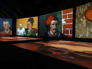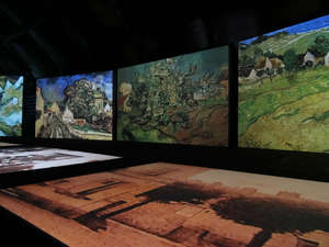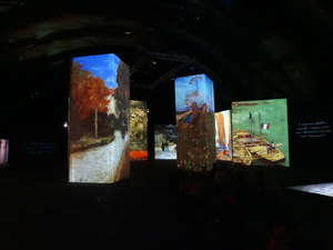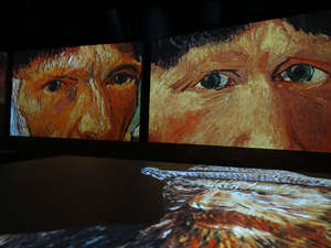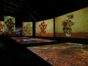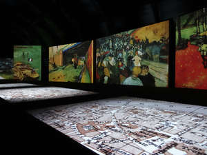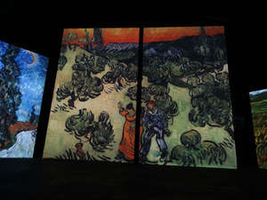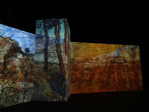 Видео инсталляция составленная из работ Ван Гога показывается на огромных экранах светящихся в чёрном пространстве павильона. Все действо проходит под музыкальное сопровождение. Видео инсталляция показывается в режиме нон-стопа. В течении получаса постоянно сменяясь картины Ван Гога рассказывают его жизни и творчестве. Всего 37 лет достались Ван Гогу на жизнь и только 10 лет на творчество.