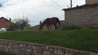 В это время в стартовом городке начался собираться народ. Такого подхода к организации я еще не видел. Все КП, как один выстроились в стартовой зоне. Само место старта было расположен у горы на которой находится Крепость "Марковы кули" Здесь в частном секторе и у подножья горы и прошел спринт. Вокруг все было, как в деревне. Пасли лошади и ослы. На жердях сушились листья табака.
