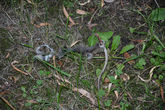 Обратили взор к террасе у мангала, а там на земле в клубке лиан "девичьего винограда" гнездо