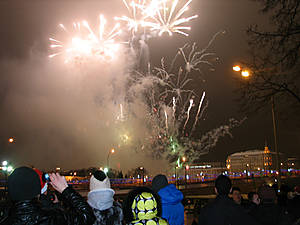 В этом году мы решили мечту сделать былью и приехали справлять Новый год в Москву. Перед походом на площадь залезли в интернет и начали читать о Новом году на Красной площади. Оказывается, чтобы исполнить мечту, надо прийти на площадь часам к 8 вечера и 4 часа мерзнуть на площади. Такой вариант нас не устраивал, поэтому мы спокойно справили сначала Новый год по-уральски, а затем в 11 часов выдвинулись на площадь.