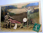 Еще более интерны открытки с сюжетом, когда один год сменяет другой. Сюжет на этих открытках, как правило, драматичный.