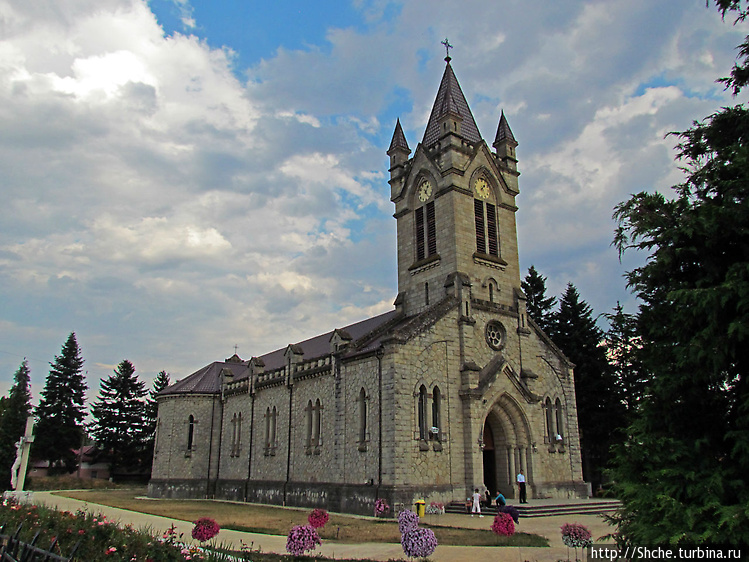 А через километр мы любовались в том же селе выглядевшим по-новому свежо католическим храмом