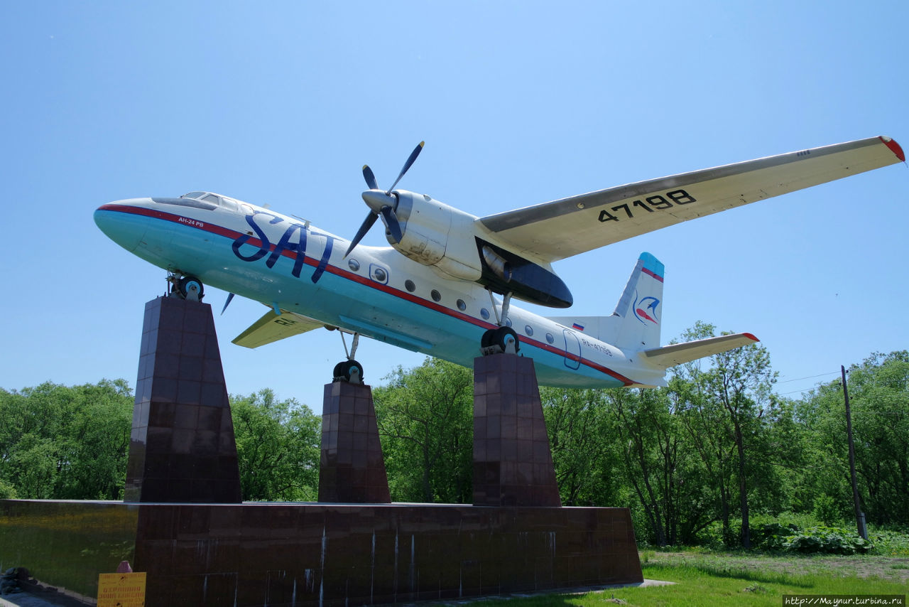 Труженица, каких поискать. До сих пор самолеты этого типа бороздят сахалинское небо, наряду с тушами "Боингов".На площади Победы идет грандиозное строительство мемориального комплекса в честь 70 летия Победы.