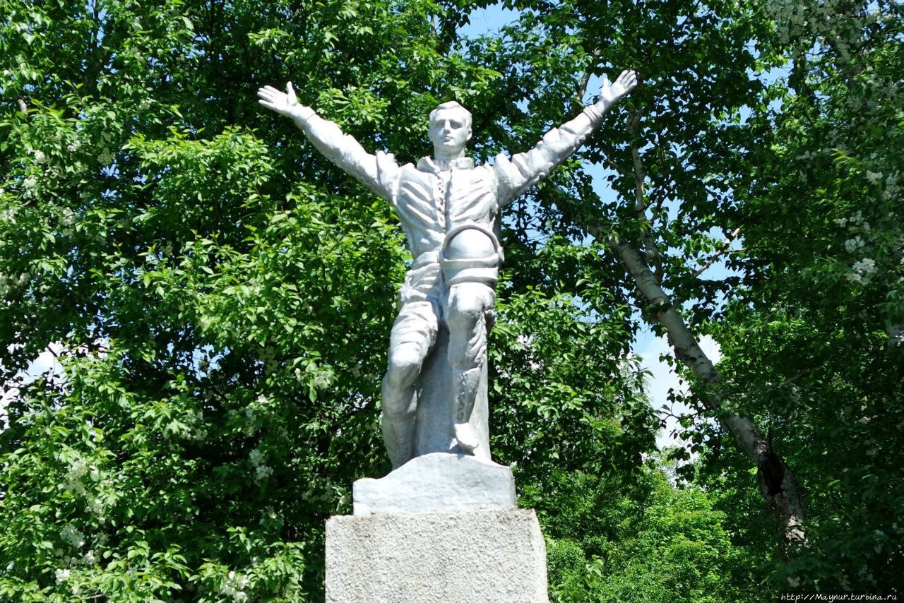 Центральный вход в городской парк имени Ю. А. Гагарина украшает памятник, посвященный первому космонавту земли Ю.А. Гагарину.
