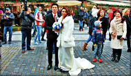 Что ж, прохожие его замечают, но лишь улыбаются. Кружка вампира пуста. И только те, кто с уличным привидением фотографируются, наполняют её.