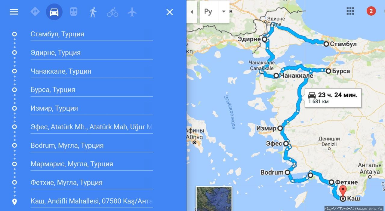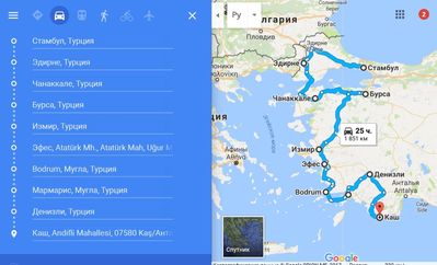 Стамбул — Эдирне — Чанаккале — Бурса — Измир — Эфес — Бодрум — Мармарис — Фетхие — Каш