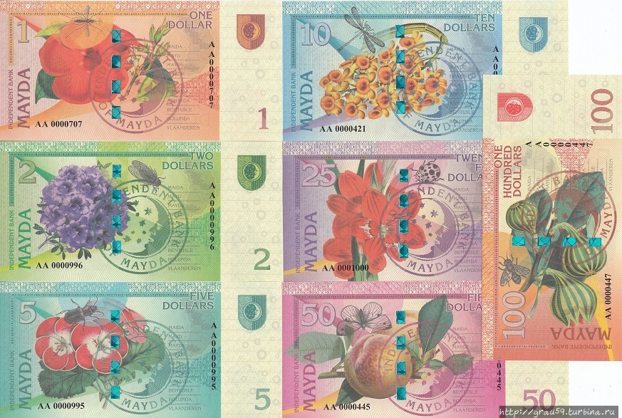 В 2017 году появился набор из 7 купюр для этой несуществующей земли, номиналами 1, 2, 5, 10, 25, 50 и 100 долларов..