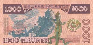 В 2017 году появились на свет деньги для острова Бусс. Набор из 6 банкнот, номиналом 50, 100, 200, 500 и 1000 крон.