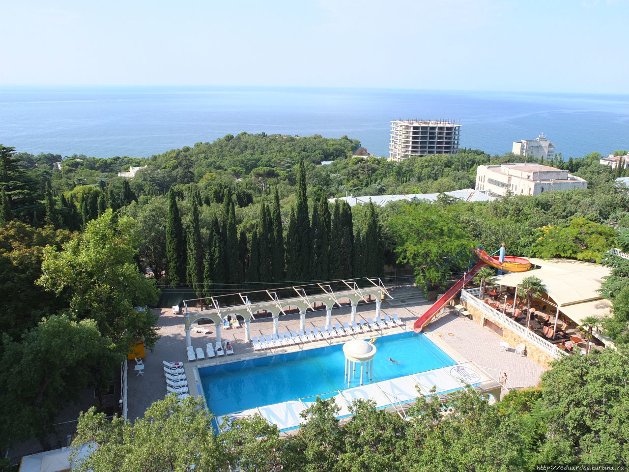 Из плюсов — только наличие кондиционера в номерах, рабочего холодильника и, чего уж тут, потрясающей панорамы на море — с одной стороны и на горные вершины Ай Петри — с другой!!!