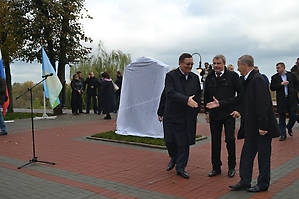 Ну вот наступила долгожданная минута, ради чего все собрались: губернатор, мэр города, председатель областной думы, коллективно сдернули с обелиска, на верхнем ярусе Набережной, покрывало.