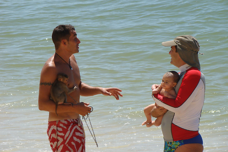 Как только отец обезьянки посмотрел в мою сторону я прекратила съемку. Болтали они еще минут сорок, мама с девочкой ушли в отель — ребенку пора было обедать и спать. ;)