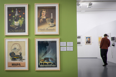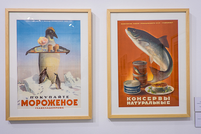 Первое ощущение, что эта экспозиция в рамках Фотобиеннале-16 как бы совсем ни к месту. Советский плакат о счастливой жизни. Такой же бессмысленный и беспощадный, как и книга «О вкусной и здоровой пище» 1949 года выпуска. Но впечатляет и завораживает. Особенно тех, кто тогда не жил. А те, кто жил, знают – такого изобилия отродясь нигде не было. Ни икры, ни балыков. Разве что в районе их добычи и продовольственных распределителях для партийно-советской номенклатуры… Но когда переходишь в соседний зал, начинаешь понимать, в чем тут фишка. Здесь уже фотографии о том, как было на самом деле – Соколаева, Щеколдина, Тарасевича и других замечательных журналистов той эпохи. Они-то и призваны были оттенять агитплакаты и рекламу советских, хоть плохоньких, но прекрасных своей угловатой не совершенностью, товаров. Тот же первый телевизор КВН 1947-го года или варёные джинсы эпохи перестройки. Да и настоящие американские здесь тоже есть – фотографа и журналиста Юрия Роста. Штопаные-перештопанные, как и у всех нас тогда. Потому что джинсы достать было мало. Нужно было заранее знать, у кого есть швейная машинка со строчкой зигзагом – иначе на три года ежедневной носки джинсы не растянешь, как ни старайся…