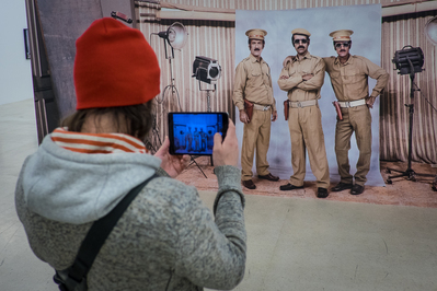 Эта часть общей экспозиции в «Манеже» способна вызвать две реакции. Первую – ностальгию у тех, кто помнит Радж Капура в индийском фильме «Бродяга» — «Бродяга я, абарая-я!..». И вторую – желание сняться на фоне полноростовых портретов французского художника Оливье Кюльманна. Прикольно, чего уж там!..