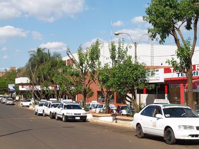 Город строится «на вырост». С двух сторон от шоссе появились параллельные улицы, на них — разнообразные коммерческие учреждения. Периодически пересекаем широкие двухполосные авениды. Теперь свернули на одну из них, с неё – на другую. Город как город, похож на новые бразильские больше, чем все другие из увиденных в Парагвае. Ещё пара поворотов и причаливаем к автовокзалу. Местное время 13:10, т.е. прошло 5ч40м после посадки в автобус.