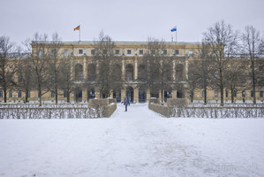 Во время Второй мировой войны Хофгартен был разрушен. Восстановленный Хофгартен представляет собой стилистический компромисс между английским ландшафтным парком, появившимся здесь на основе плодового парка середины XIX в., и изначальным проектом парка XVII в.