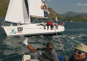 В первый гоночный день поставили треугольную дистанцию в пределах бухты Мармариса. Финиш был практически у набережной. Да и весь ход гонки можно было прекрасно наблюдать с берега.
