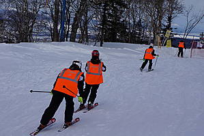 Одновременно с костюмированным праздником "Снежный карнавал "не соседнем склоне проходили международные соревнования по слалому среди детей.