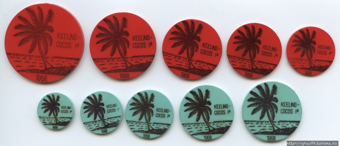 14 февраля 1966 года на смену австралийскому фунту пришёл австралийский доллар. Тогда в 1968 году пятый правитель островов, Джон Сесил Клуниз-Росс, выпустил монеты из цветной пластмассы.