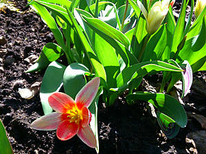 А в довершению к праздничному настроению первые распустившиеся тюльпаны и белые облака крокусов.