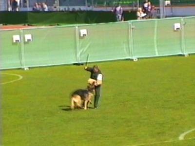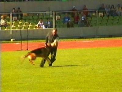Судья разрешил Ирине подойти к собаке. В это время Арчер вспомнил тренировки и решил выполнить облаивание. Пока Ирина шла к нему, он хоть и без большого спортивного энтузиазма, но пагавкивал на фигуранта. Для зигеровской выставочной проверки, в отличие от соревновательной проверки, такого облаивания было более чем достаточно. Когда Ирина была уже в нескольких шагах, Арчер слегка отступил от фигуранта на шаг, продолжая погавкивать, чтобы не было сомнения, что он вновь вцепится в рукав, как это с ним, порой бывало. Ирина, подойдя вплотную, скомандовала «рядом», и Арчер направился с ней прочь от фигуранта к исходной позиции на лобовую атаку.