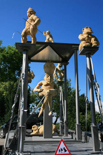 Вы слышали о креативном протесте художника Петра Павленского?! Скульптор Петер Ленк — это аналогичный случай. Он выступает против массовой культуры, отупляющей обывателя, против лицемерия церкви и цинизма политиков. Не смотря на гротескность и карикатурность его скульптур, они не так просты, как кажется на первый взгляд. Почти в каждой из них есть параллель с классической литературой. Перфомансы же связаны с актуальными событиями. Возьмем, к примеру, Империю — пожалуй самую известную работу Ленка, установленную в Констанце еще в 90-х.
