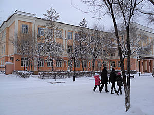 Встретившись со своей одногруппницей спешу увидеть главный корпус, свою alma mater. Расположен он практически на берегу Урала, на центральной улице города. А вот и знакомое здание!