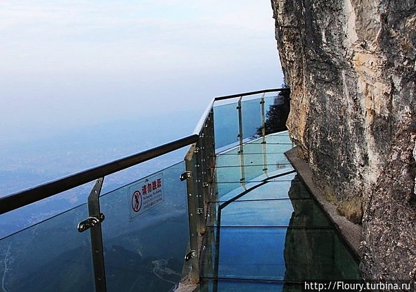 Китайцы порадовали любителей экстрима и острых ощущений. На высоте 1500м они проложили стеклянную дорожку на склоне горы Тяньмэнь в национальном лесном парке Чжанцзяцзе в провинции Хунань. Толщина дорожки составляет 6 сантиметров, ширина 1метр. Специально стекла чистят тщательно.