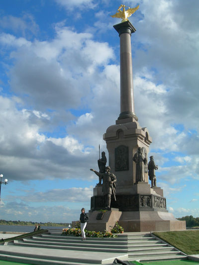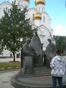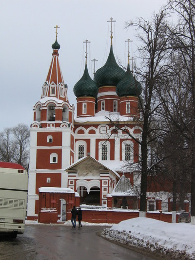 С детей на руках не особо нафоткаешь, поэтому использую из домашнего архива. Они позволяют попасть в сказку "о 12 месяцах".:) Мы с Мартином переправились не на лодке, конечно. Вышли с автобуса в историческом сердце города. Идем мимо Богоявленской площади. Площадь названа в честь одноименной церкви. Левее церкви памятник Ярославу Мудрому. В народе "окрестили" — мужик с тортом. В роли торта — макет Ярославля. Башенка и часть стены — Спасо-Преображенский монастырь. На данный момент, в нем расположен пока еще, Ярославский государственный историко-архитектурный и художественный музей-заповедник. Его-то, некоторые именуют Ярославским Кремлем. Да, в свое время монастырские стены выдержали осаду. Только, этого маловато для Кремля...