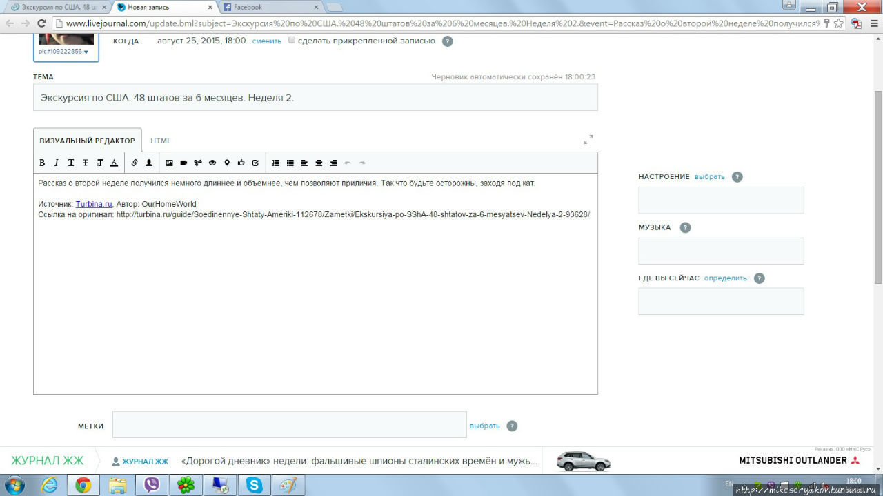 В ЖЖ заметка отображается как краткий заголовок со ссылкой на оригинал на Турбине. В данном случае речь идёт о копировании любого понравившегося материала, не обязательно своего. Если нужно переместить в ЖЖ именно свой написанный материал, то об этом подробно