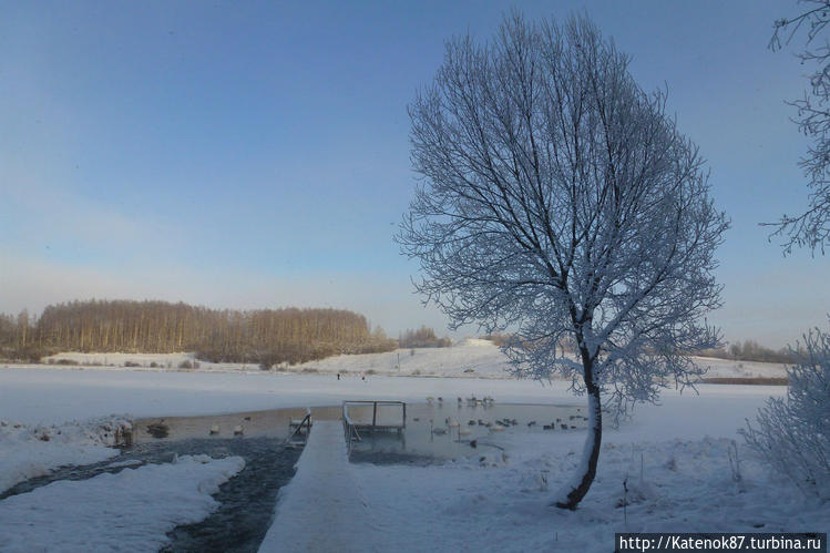 Крепость изборок, утопающая в белых снегах, такие родные для глаза поля и леса, На ручьях и озёрах с ключевой водой "приключились" белоснежные лебеди. Умиротворение!