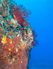 Такие приятные солнечные погружения — вокруг красота и никакого напряга. Очень подвижные мягкие кораллы, реагирующие на малейшее движение яркими переливами цвета. Но Ака — это не только парение над зарослями кораллов в косяках рыб, там есть и интересные ландшафты: скальные обрывы, камни, покрытые разноцветьем, проходы, выводящие в гроты и залы с потоками солнечного света с поверхности. Что еще нужно для отдыха и фан-дайвинга?