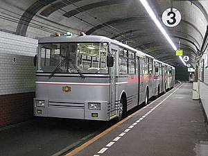 НО! Эта туннельная линия была открыта позднее Линии Куробэ — 25 апреля 1971, и вначале обслуживалась автобусами. И только потом 23 апреля 1996 автобус был заменён троллейбусом.