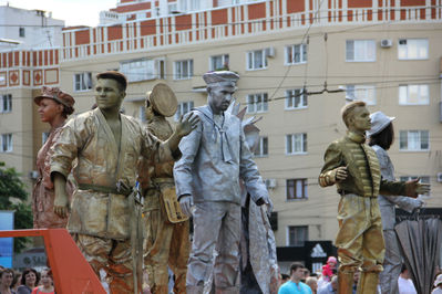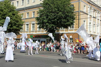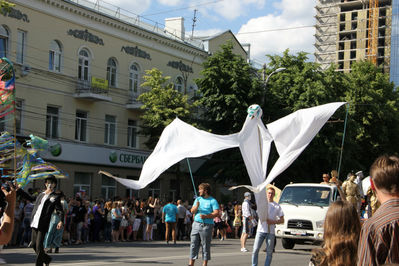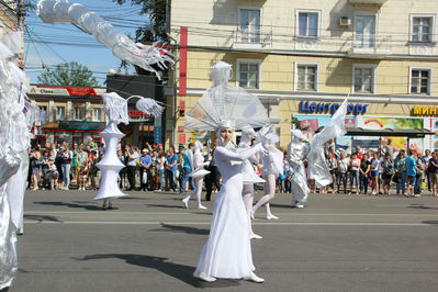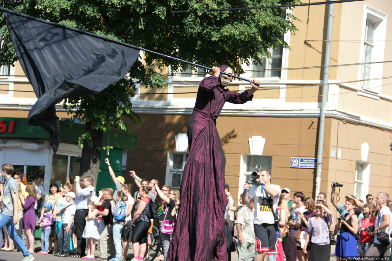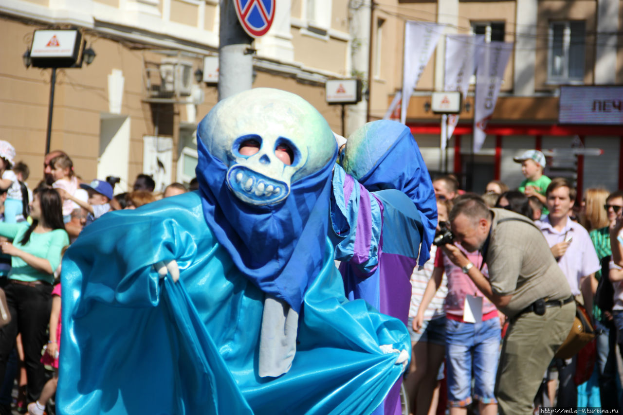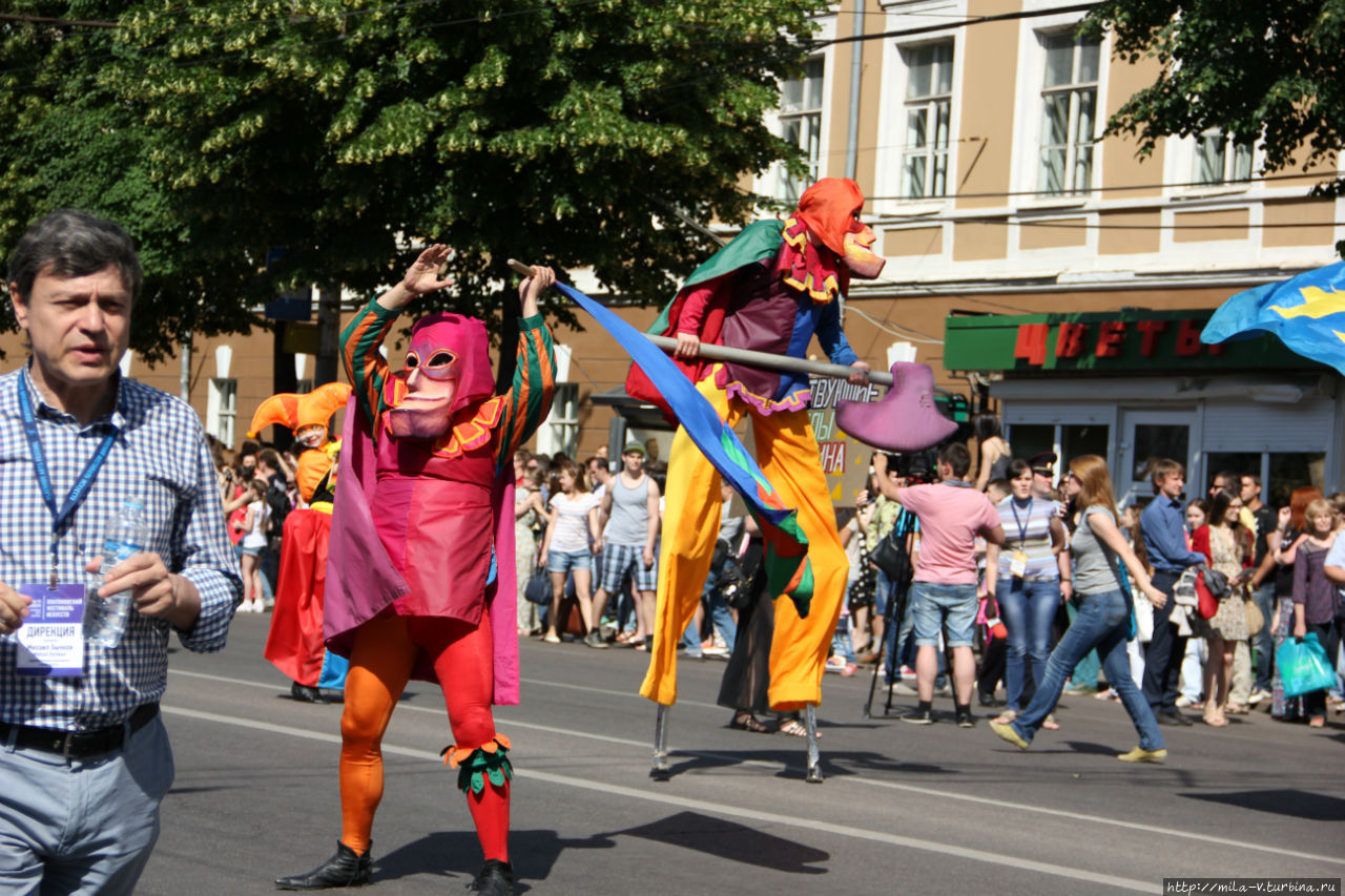 Стряхните пыль с фотоаппаратов и видеокамер!!! По центру г.Воронежа идут самые веселые клоуны, ходулисты и музыканты в головокружительных костюмах!!! В Воронеже парад уличных театров!!!