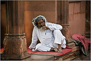 Я никак не мог оторваться от съемки, причем, снимал не саму мечеть — здание оно и есть здание, а людей — простых мусульман, которые приезжают сюда со всей Индии. Вот эта девчушка бегала вокруг и ей так хотелось заработать денежку. Индийцы хорошо знают, что иностранцы платят за съемку. Но в тоже время было видно, по ее пугливым взглядам, что внутри мечети запрещено так зарабатывать. мусульмане вообще против изображения человека, они очень не любят, когда их снимают. Выбрав удобный момент, она все-таки попозировала мне, получив свои вожделенные рупии взамен... А кто-то из сидящих под колоннами аксакалов подумал: вот мерзавка, здесь же святое место... Но кушать ведь хочется везде...