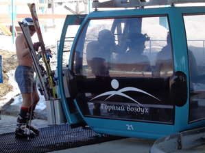 Длина спуска приблизительно равна одному км. Температура воздуха в этот день была около десяти градусов тепла. Скорость спуска что — то около 60 км. Теперь несложно представить ощущения почти голых людей на склоне. Они кайфовали, спускались не спеша — снизу было видно, как им хорошо!