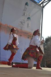 не только на сцене. Множество нарядно одетых певцов встречали зрителей.Ярких красочных костюмов хватило бы не на один праздник.