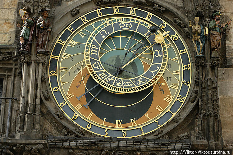 Упомянул он и о двенадцати знаках зодиака – о тех шести, что над горизонтом, и других шести, что за горизонтом. Объяснил магистр Гануш, что Орлой его показывает все праздники в году и написан на нем весь гражданский календарь с двенадцатью месяцами, обозначенными простыми и золотыми цифрами.