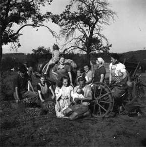 Благородное семейство Сайн собирает урожай на полях своего поместья. Фотография 1940-х годов