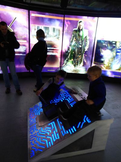 Можно крутить тренажёр, пытаясь достичь рекорда капитана Америки, или пытаться поднять молот Тора. Можно управлять Халком или самому стать Железным человеком, отсканировав себя на большом мониторе. Есть виртуальные игры, благодаря которым можно почувствовать себя любым из Мстителей.