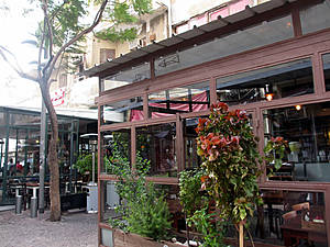 Мечеть Хасана Бака - "символ противостояния евреев и арабов" современных отелей..К этому времени мы уже порядком устали и зашли в кафе выпить по чашечке кофе.