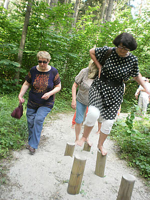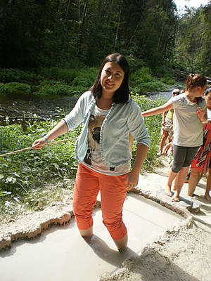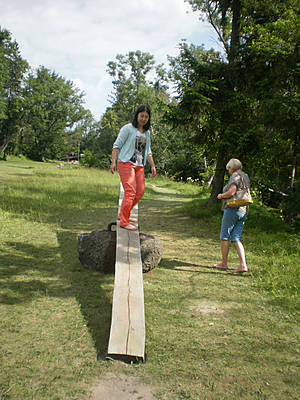 Первая в Балтии босоногая тропа находится недалеко от Тукумса в волости Smārdes.Галька, валуны и жернова, мох, шишки, песок взморья, тростники,грубый ствол сосны, глина, освежающая вода реки.По всему этому нам пришлось пройтись.Ощущения словами не передать,лучше самим приехать и ощутить их!!!! ;-)