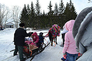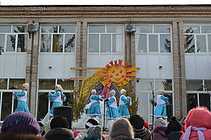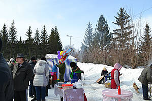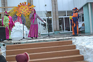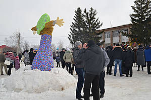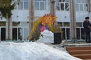 В этот день у нас всегда проходит праздник "Прощание с Зимой". Только она в этом году никак с нами распрощаться не хочет. День выдался не холодный, но солнца было мало, наверное поэтому не до конца праздник и ощущался.